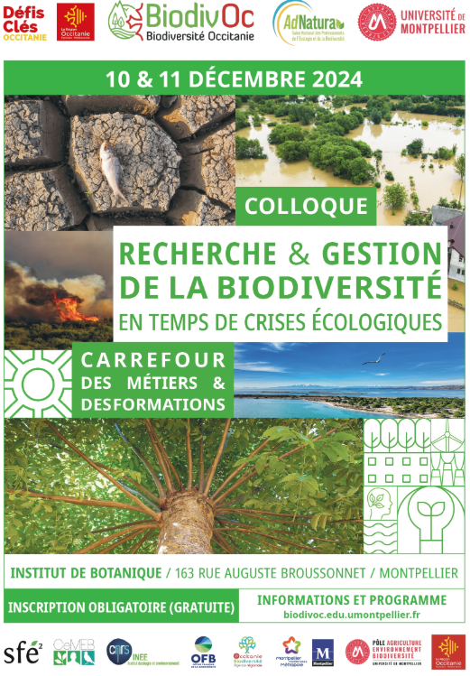 BiodivOc et AdNatura s’associent pour proposer deux journées à l’interface entre recherche et gestion de la biodiversité avec un colloque "RECHERCHE & GESTION DE LA BIODIVERSITÉ EN TEMPS DE CRISES ÉCOLOGIQUES" et le carrefour des métiers et des formations de la filière professionnelle de l’écologie et de la biodiversité.