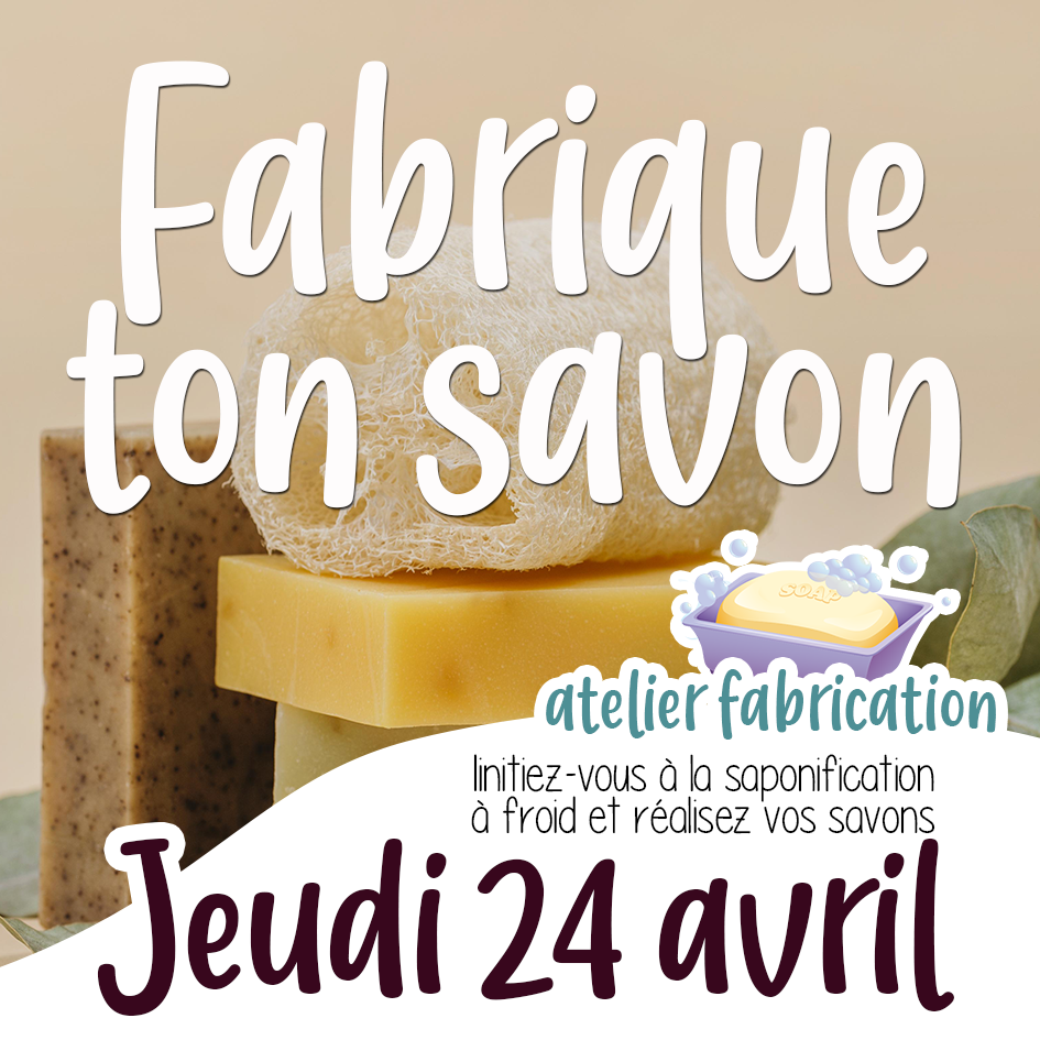 Atelier fabrication : Vous avez toujours voulu tenter la fabrication de savons sans jamais avoir osé vous lancer ! Et si vous passiez le pas! Venez-vous initier à la saponification à froid, créer une recette équilibré et réaliser vos savons avec le matériel et l’équipement adéquat.