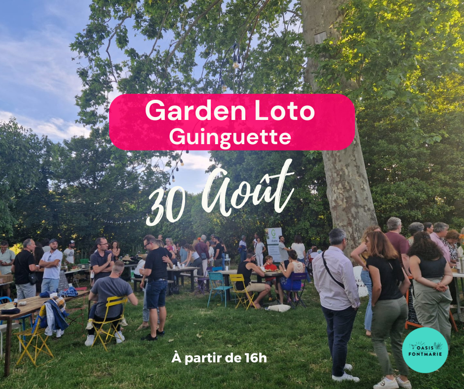 Participez à notre Garden Loto au cœur des jardins de l’Oasis et tentez de remporter des prix! Pour celles et ceux qui le souhaitent, le loto sera suivi d’un moment convivial et festif dans une ambiance guinguette pour continuer de partager !