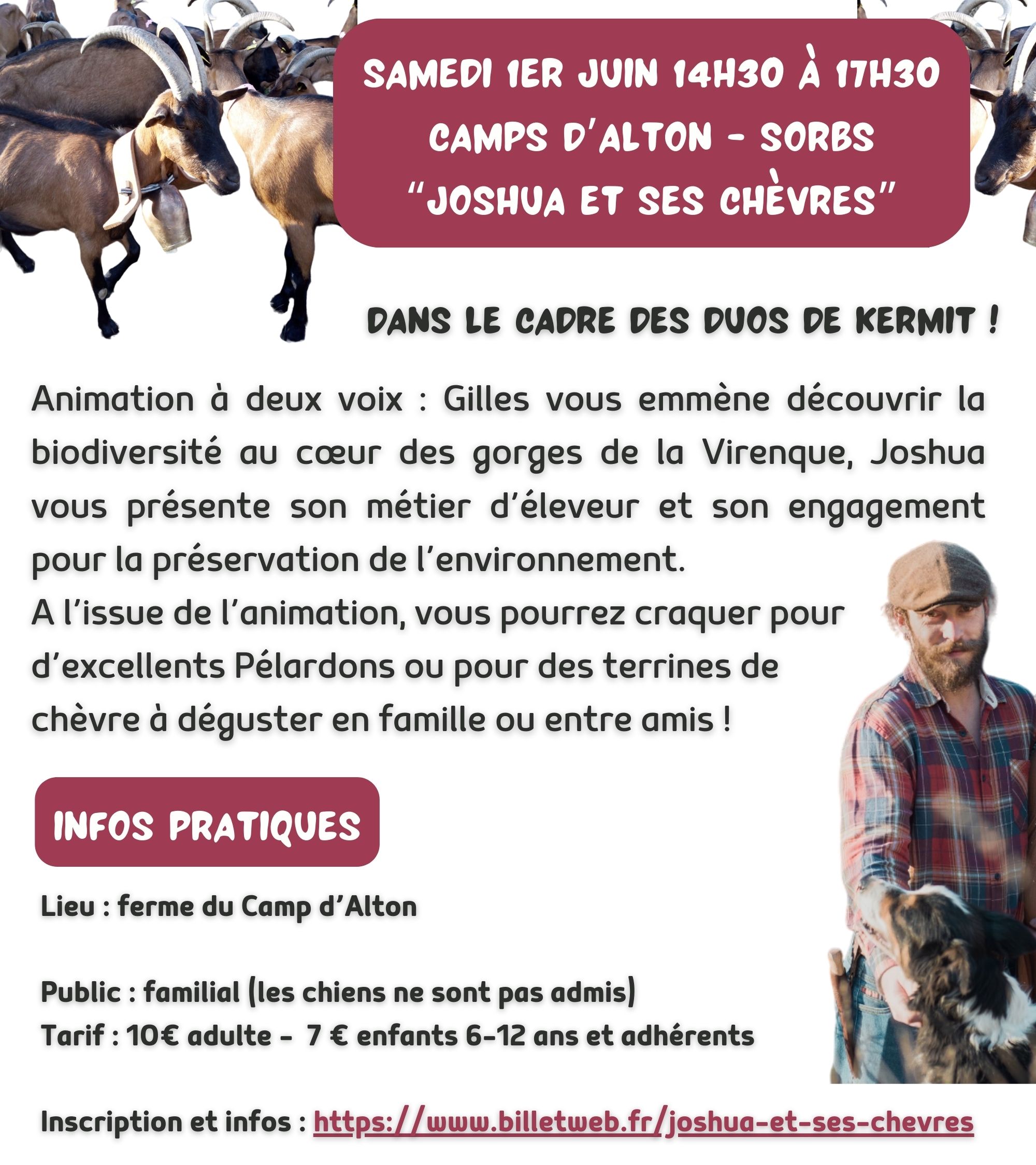 Animation à deux voix : Gilles vous emmène découvrir la biodiversité au cœur des gorges de la Virenque, Joshua vous présente son métier d’éleveur et son engagement pour la préservation de l’environnement.