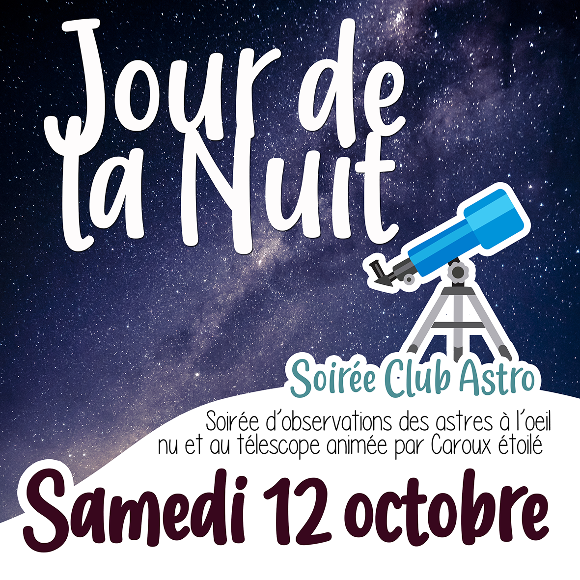 Soirée Club astro : Avis aux astronomes en herbe et aux rêveurs nocturnes ! Embarquez pour un voyage inoubliable dans le ciel nocturne du Haut-Languedoc, guidés par les passionnés de notre club "Caroux étoilé" : observation des astres à l'œil nu et au télescope, découverte des constellations… Un moment magique à ne pas manquer !