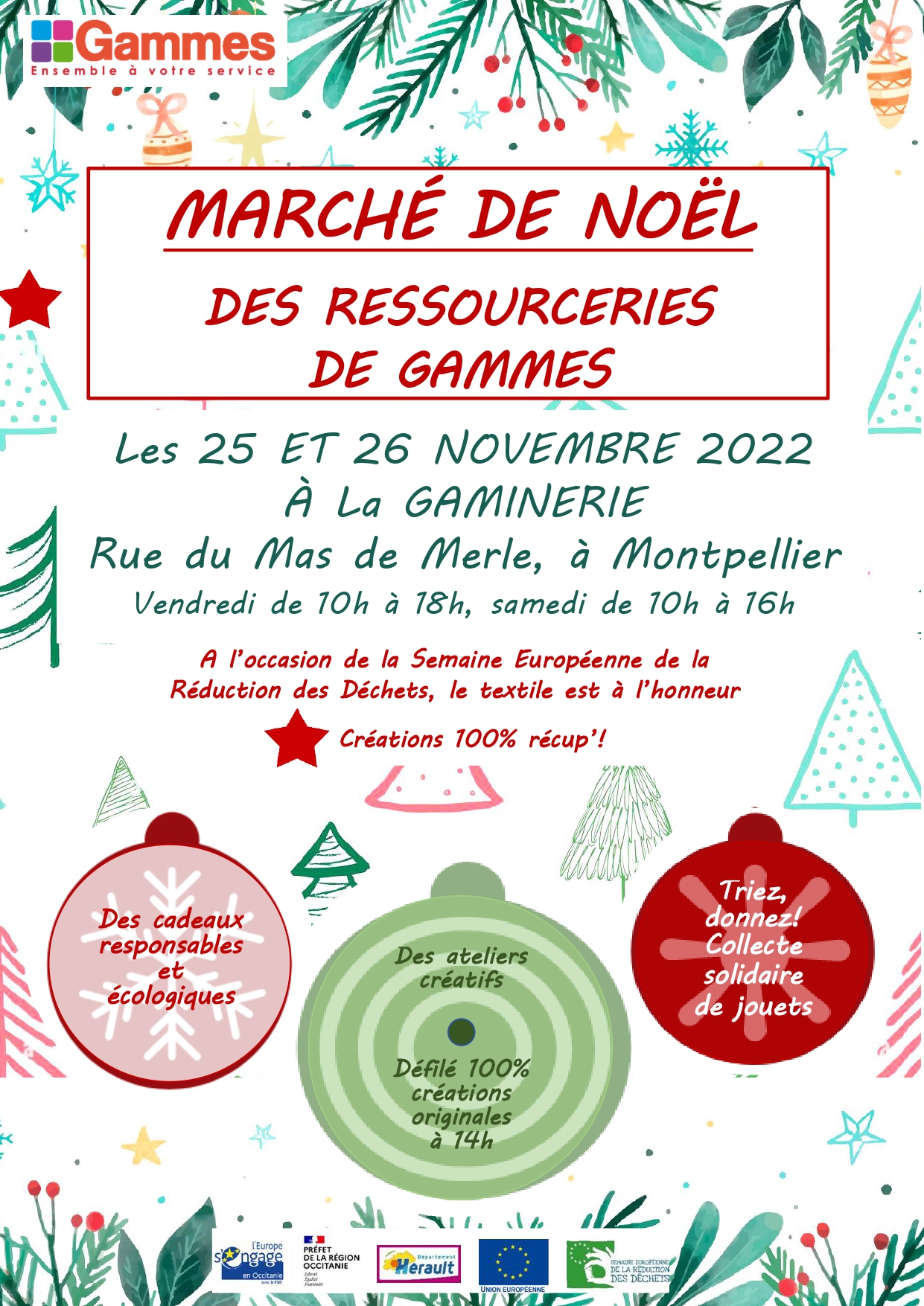 À l'occasion de la Semaine Européenne de Réduction des Déchets, les Ateliers d'Insertion et Ressourceries de Gammes mettent à l’honneur le textile et proposent un marché de Noël 100% réemploi.