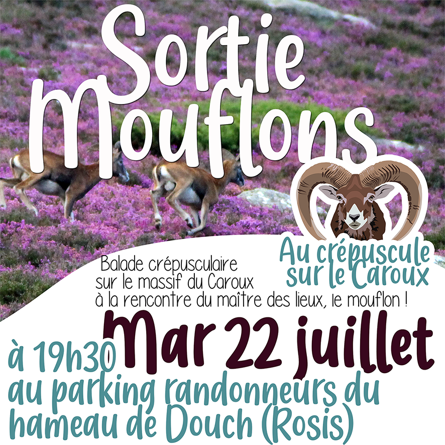 SORTIE MOUFLONS : Balade crépusculaire sur le scintillant massif du Caroux à la rencontre du maître des lieux, le célèbre et emblématique mouflon ! Abandonnez-vous à ces paysages magnifiques, à l'heure où le soleil effleure l'horizon... Sortie pour observateurs attentifs et discrets.