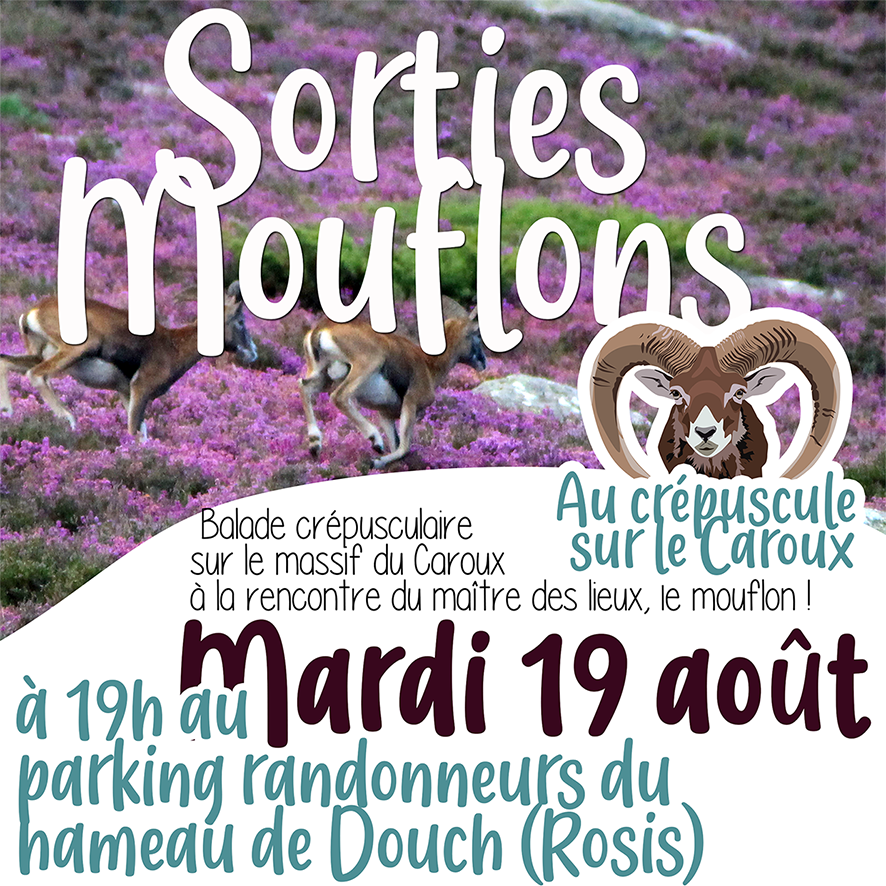 SORTIE MOUFLONS : Balade crépusculaire sur le scintillant massif du Caroux à la rencontre du maître des lieux, le célèbre et emblématique mouflon ! Abandonnez-vous à ces paysages magnifiques, à l'heure où le soleil effleure l'horizon... Sortie pour observateurs attentifs et discrets.
