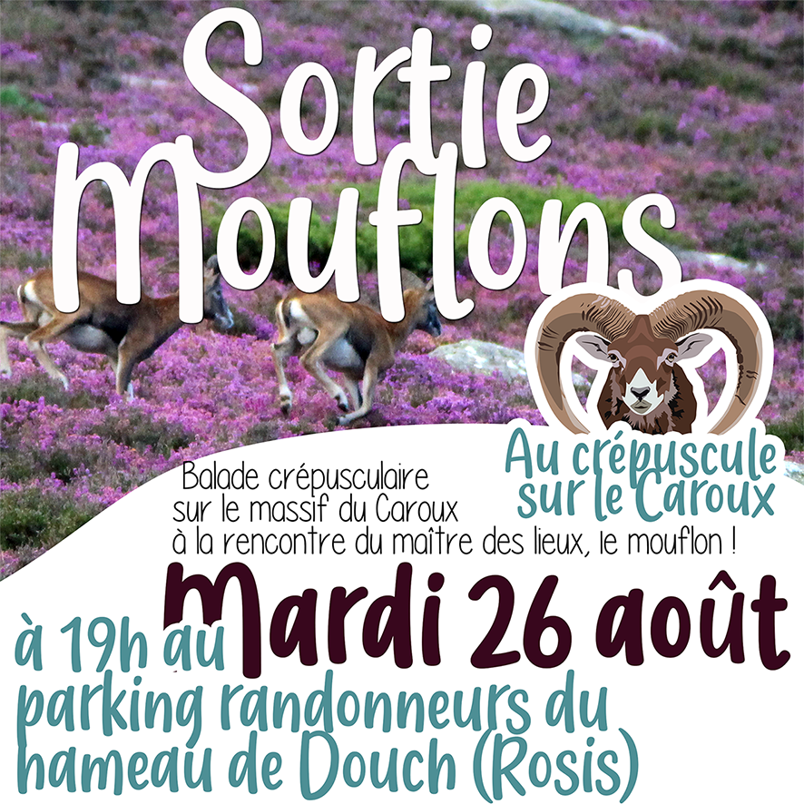 SORTIE MOUFLONS : Balade crépusculaire sur le scintillant massif du Caroux à la rencontre du maître des lieux, le célèbre et emblématique mouflon ! Abandonnez-vous à ces paysages magnifiques, à l'heure où le soleil effleure l'horizon... Sortie pour observateurs attentifs et discrets.