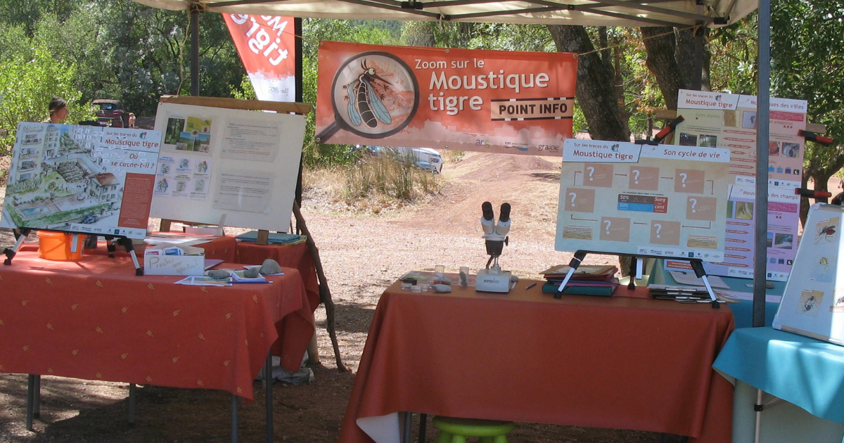 Lors des portes ouvertes du jardin partagé d’Aspiran, arrêtez-vous dans cet espace ludique pour comprendre les enjeux du moustique tigre. Apprenez à l’identifier à l’aide de spécimens, découvrez son cycle de vie, les risques sanitaires et les mesures préventives à adopter.